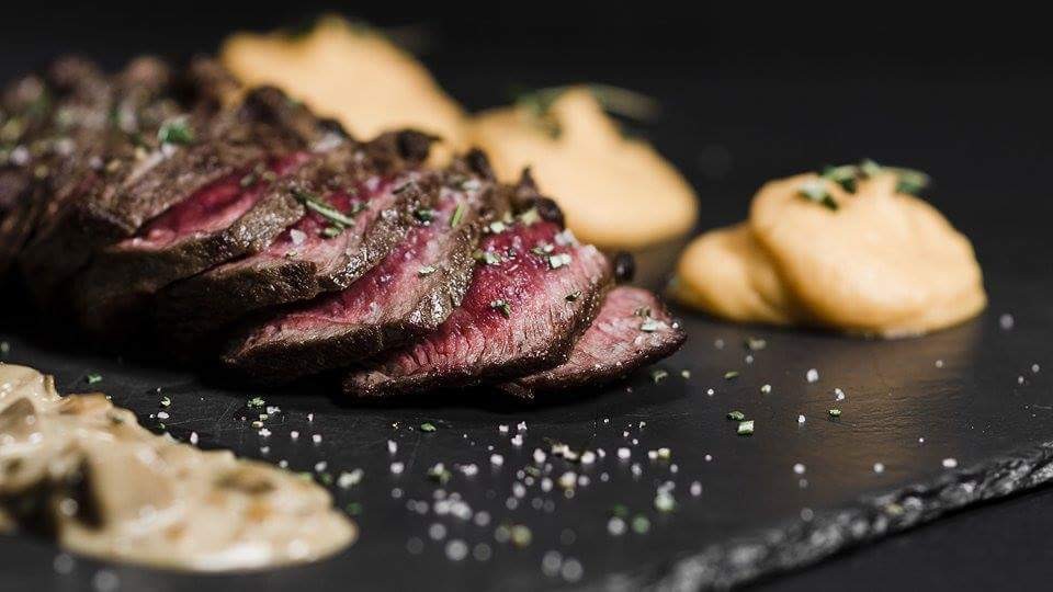 Η ταλιάτα από πικάνια, με πουρέ καρότο και ραγού μανιταριών. Όλα είναι προσεγμένα. Από την κοπή του κρέατος, μέχρι τον πουρέ, αλλά και την σάλτσα που τα συνοδεύει.