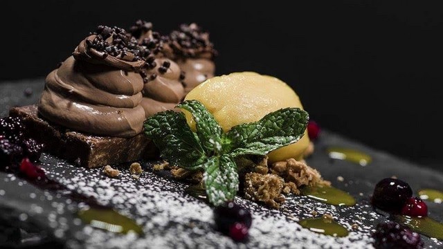 Μετά από ψάρι δένει άψογα μια Lemon Pie: Δροσερή κρέμα λεμονιού σε τραγανά crumble αμυγδάλου και παγωτό σοκολάτα. Θα βοηθήσει να καθαρίσουμε το στόμα μας από τη γεύση του ψαριού και να έρθει η ισορροπία της γεύσης. Μετά από κρέας, προτείνω ένα Chocolate Croquant: Cremeux σοκολάτας γάλακτος σε τραγανή βάση γκοφρέτας πραλίνα και σορμπέ μάνγκο. Σοκολατένιο, τραγανό και με τη δροσιά του παγωτού που θα αφήσει στο στόμα μια υπέροχη γεύση.