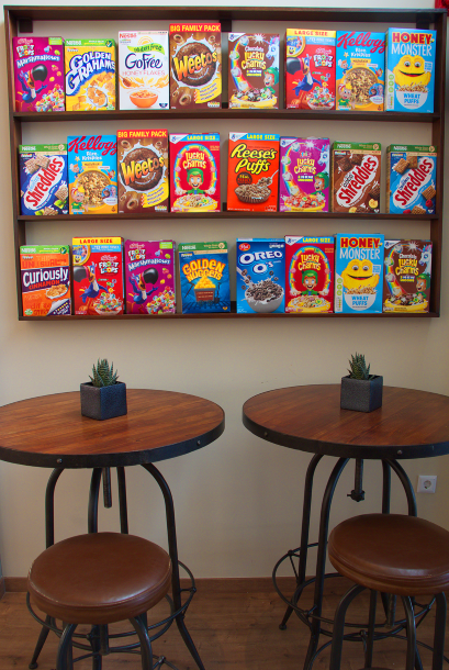 Ξεφυλλίζοντας τον κατάλογο, βλέπω επιλογές πρωινού, με highlight το Breakfast at Kimer’s, ένα πλατό δυο ατόμων που περιλαμβάνει κρουασάν βουτύρου, pancakes, πολύσπορο ψωμί, βούτυρο, πραλίνα φουντουκιού, μαρμελάδα, pretzel, λουκάνικο Βαυβαρίας, μπέικον, τυρί, αυγά τηγανητά και English muffins για να ξεκινήσεις υπέροχα τη μέρα σου. Βλέπω επίσης ένα ειδικό μενού μόνο με δημητριακά, που περιλαμβάνει cereals που έρχονται από το εξωτερικό και κυρίως από την Αμερική και δεν θα βρεις αλλού στην Ελλάδα, όπως με διαβεβαιώνει η Ράνια (ενώ μου εξηγεί πως τα παιδιά τρελαίνονται γι’ αυτά). Το μενού έχει επιμεληθεί ο executive chef του Kimer’s, Αλέξανδρος Χατζηχαλκιάς.