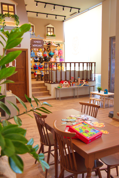 Έτσι, στις 10 Σεπτεμβρίου, λίγο πριν το δεύτερο lockdown, άνοιξε το Kimer’s, που αποτελεί ίσως το πιο πρωτότυπο concept που έχω δει στην εστίαση. Δυστυχώς, πρόλαβε να λειτουργήσει μόνο δυο μήνες, κατάφερε όμως πολύ γρήγορα να κατακτήσει τις καρδιές όσων το έχουν επισκεφθεί. Μπαίνοντας στον χώρο για τα παιδιά, βλέπω έναν μικρό παράδεισο γι’ αυτά. Το ξύλο κυριαρχεί σαν υλικό, τόσο στο δάπεδο, για την ασφάλειά τους, όσο και στον υπόλοιπο χώρο, ώστε να αποπνέει μια ζεστή ατμόσφαιρα. Παιχνίδια, ένα μανάβικο, μια παιδική κουζίνα και τραπεζάκια όπου τα παιδιά απασχολούνται με τις ώρες. Βλέπω επίσης ένα corner με άπειρα αρκουδάκια και ρουχαλάκια τακτοποιημένα στην εντέλεια, για το οποίο η Ράνια μου μιλά στη συνέχεια.