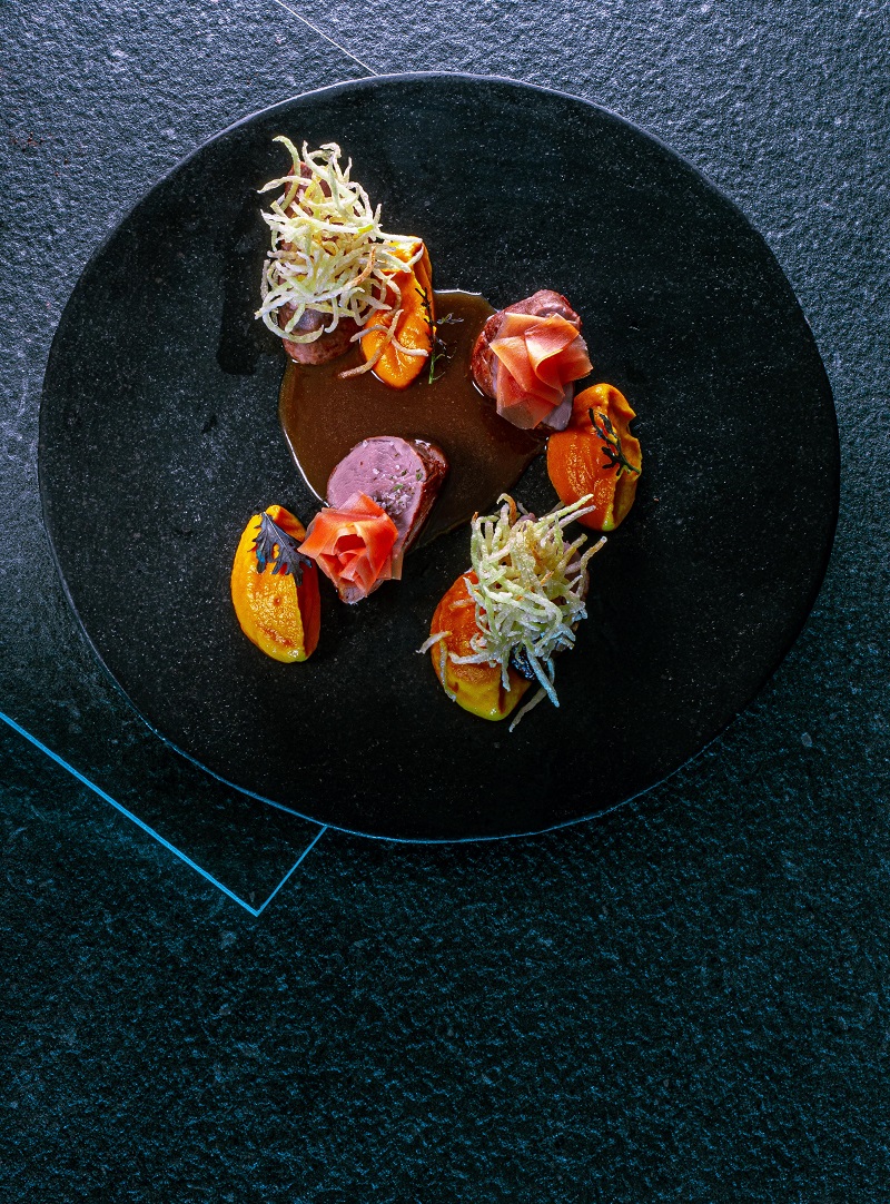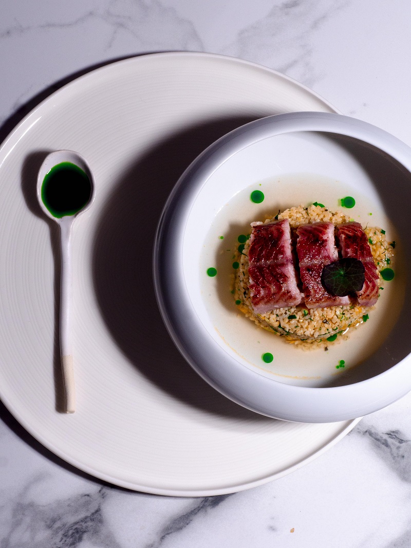 Στο εορταστικό μενού βρίσκεις παντζάρι ψητό στην παραστιά, με κατσικίσιο τυρί, μιζούνα, μαύρα μούρα και κακάο criollo και σούπα λαχανικών με καπνιστό βούτυρο και σκορδόψωμο. Για κυρίως σερβίρουν πανσέτα ψητή με κρούστα από φυστίκι Αιγίνης, λαχανικά και πουρέ καρότο με σάλτσα πετιμέζι, ενώ για επιδόρπιο μπορείς να δοκιμάσεις μελομακάρονο με cremeux σοκολάτας, σπασμένη μαρέγκα και passion fruit.