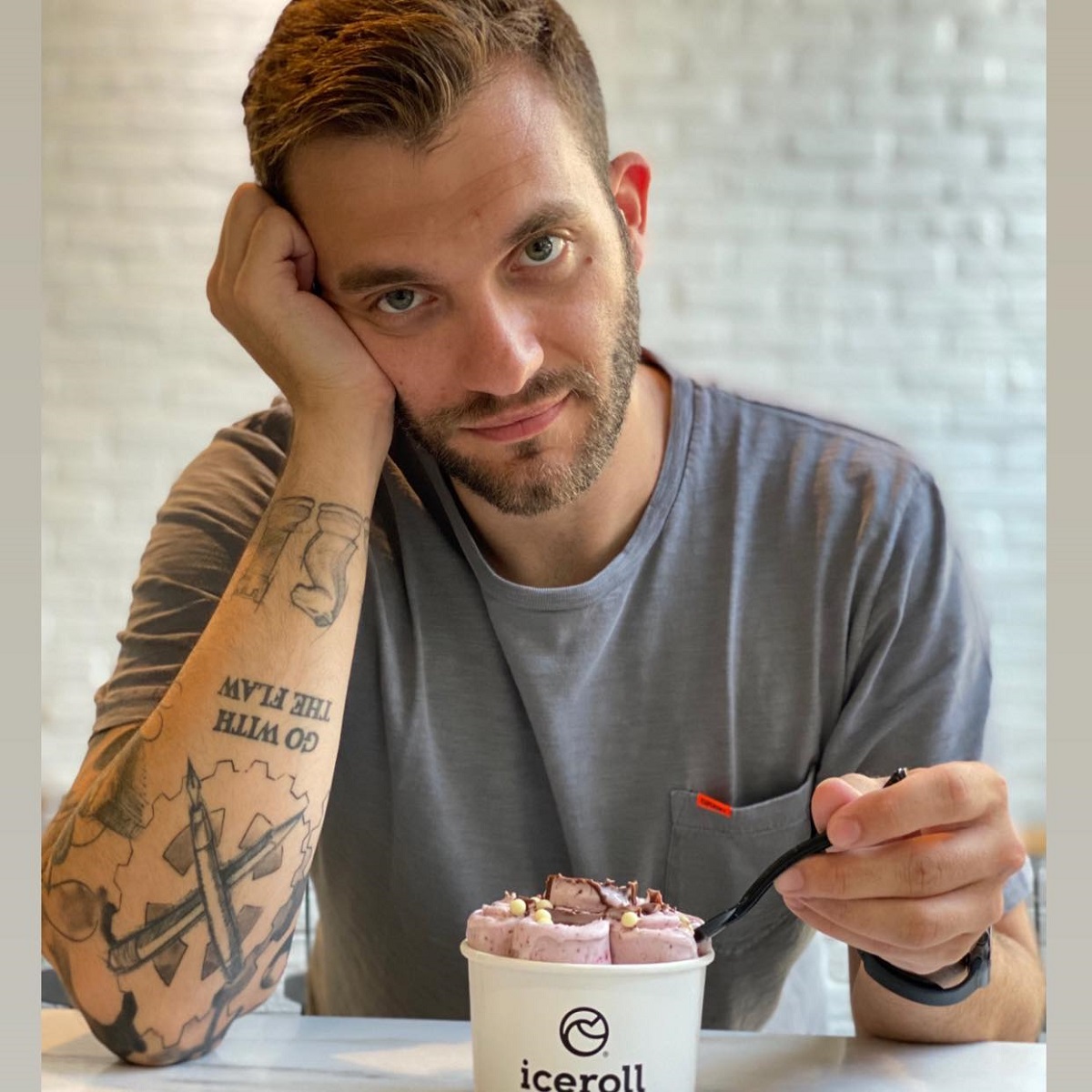 «Το concept ξεκίνησε πριν 8 χρόνια περίπου, μετά από ένα video που παρακολουθούσα με αεροπλάνα στην Ταϊλάνδη. Ένας πιλότος έδινε συνέντευξη αλλά εμένα η προσοχή μου στάθηκε ακριβώς από πίσω του, που φαινόταν πως κάτι ιδιαίτερο παρασκεύαζαν. Τελικά έφτιαχναν παγωτό. Το να μπορείς να φτιάξεις ένα παγωτό μπροστά σου από το μηδέν, με γάλα και κάποια άλλα υλικά το θεώρησα μοναδικό. Με αφορμή ένα ταξίδι μου στην Ταϊλάνδη, παρακολούθησα και από κοντά τη διαδικασία. Αυτό στάθηκε η αφορμή να μου κατέβει η ιδέα για το IceRoll. Ξεκινήσαμε πιλοτικά με ένα μαγαζί σε νησί, να μάθουμε πως μπορούμε να το τελειοποιήσουμε και όταν πετύχαμε αυτό που είχαμε στο μυαλό μας, σκεφτήκαμε ότι ήταν η σωστή στιγμή να ανοίξουμε το πρώτο μας μαγαζί στην Αθήνα» μου λέει ο Παντελής Διαμαντής, ο εμπνευστής της ιδέας. Πόσο εύκολο ή δύσκολο, όμως, ήταν να πείσει και τους υπόλοιπους να τον ακολουθήσουν;