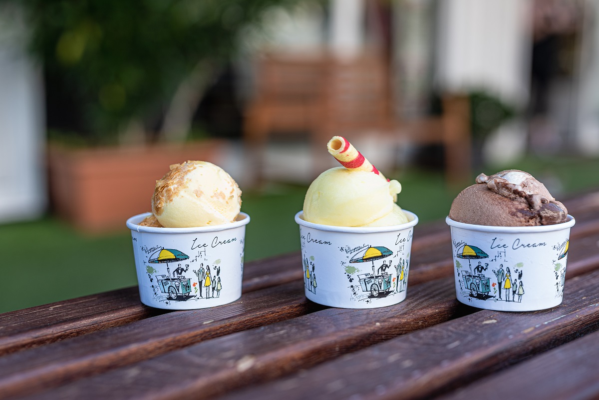 Πάρε για παράδειγμα το παγωτό προφιτερόλ, που για να γίνει πρώτα φτιάχνουν το κλασικό γλυκό με όλη του την διαδικασία -σου, κρέμα, σοκολάτα- και στη συνέχεια, αντί να το βάλουν σε μπολ στο ψυγείο το κάνουν παγωτό. Έτσι με κάθε κουταλιά γεύεσαι ακριβώς τη γεύση του γλυκού που έχεις αγαπήσει. Ανάλογη διαδικασία ακολουθούν βέβαια και για το σορμπέ λιμοντσέλο. Συγκεκριμένα, φτιάχνουν ένα “virgin” λιμοντσέλο, χωρίς αλκοόλ, περνώντας τις φλούδες του λεμονιού από όλη την απαιτούμενη διαδικασία και στη συνέχεια αυτό γίνεται ένα δροσερό σορμπέ, με φίνο άρωμα που θέλεις να δοκιμάζεις ξανά και ξανά.