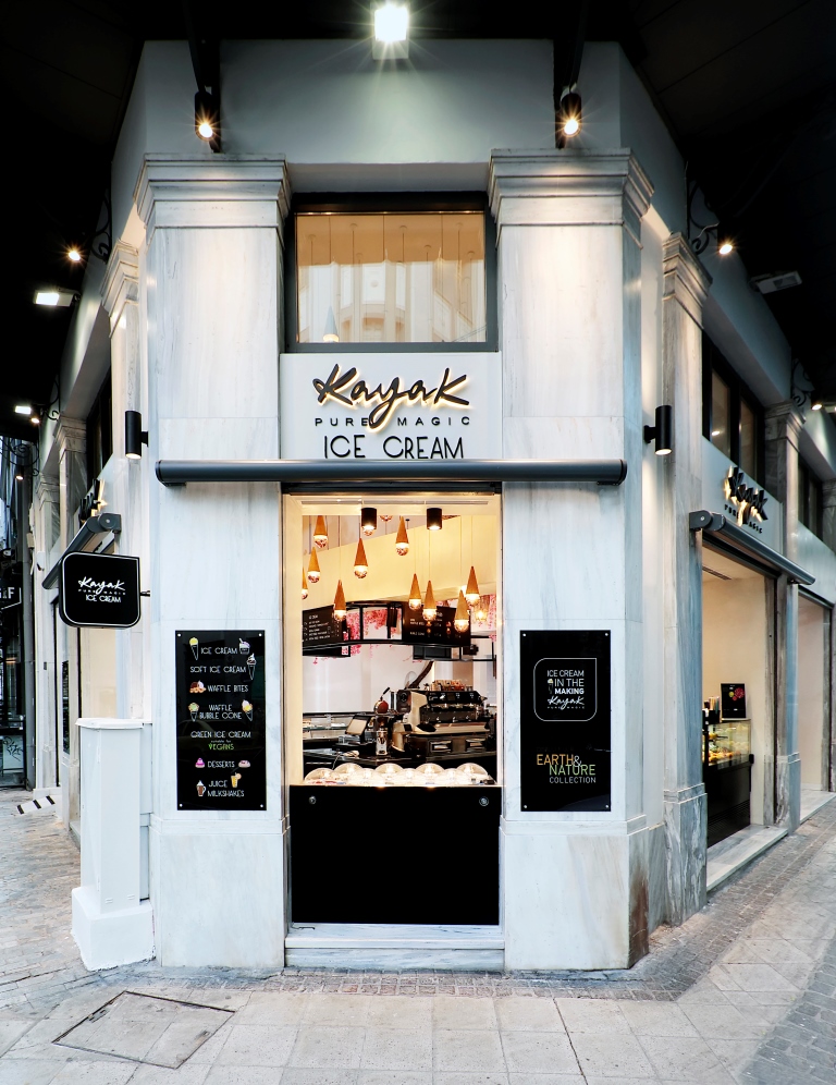 Στην καρδιά του καλοκαιριού, στην καρδιά της Αθήνας «άνθισε» το νέο kayak boutique concept store. Το 2ο μέσα στο 2021, μετά το Golden Hall και το 14ο της αλυσίδας, που τα τελευταία χρόνια διπλασίασε το αριθμό των καταστημάτων της ενάντια στις δυσκολίες που βιώνουμε. Στο κέντρο της Αθήνας, στη γωνία των οδών Μητροπόλεως και Καπνικαρέας δημιουργήθηκε ένας πολυχώρος απόλαυσης. Το Kayak στην Καπνικαρέα είναι ο απόλυτος προορισμός παγωτού στο κέντρο της Αθήνας, σε ένα χώρο διακοσμημένο με βουκαμβίλιες και λουλούδια, ενώ ταυτόχρονα πλημμυρίζει από αισιοδοξία και θετική ενέργεια. Mέσα σε μία στοά μοναδικής αρχιτεκτονικής, με δυνατότητα πρόσβασης από δύο εισόδους, ο πελάτης έχει τη δυνατότητα να επεξεργαστεί την επιλογή του με κάθε λεπτομέρεια. Αμέτρητες γεύσεις, αρώματα, χρώματα και άπειρες επιλογές γαστρονομικού ενδιαφέροντος θα «αναγκάσουν» τον περαστικό σε στάση και θα συνοδεύσουν τη βόλτα του στο κέντρο της Αθήνας με παγωτά, βάφλες, γλυκά, χυμούς και καφέ.