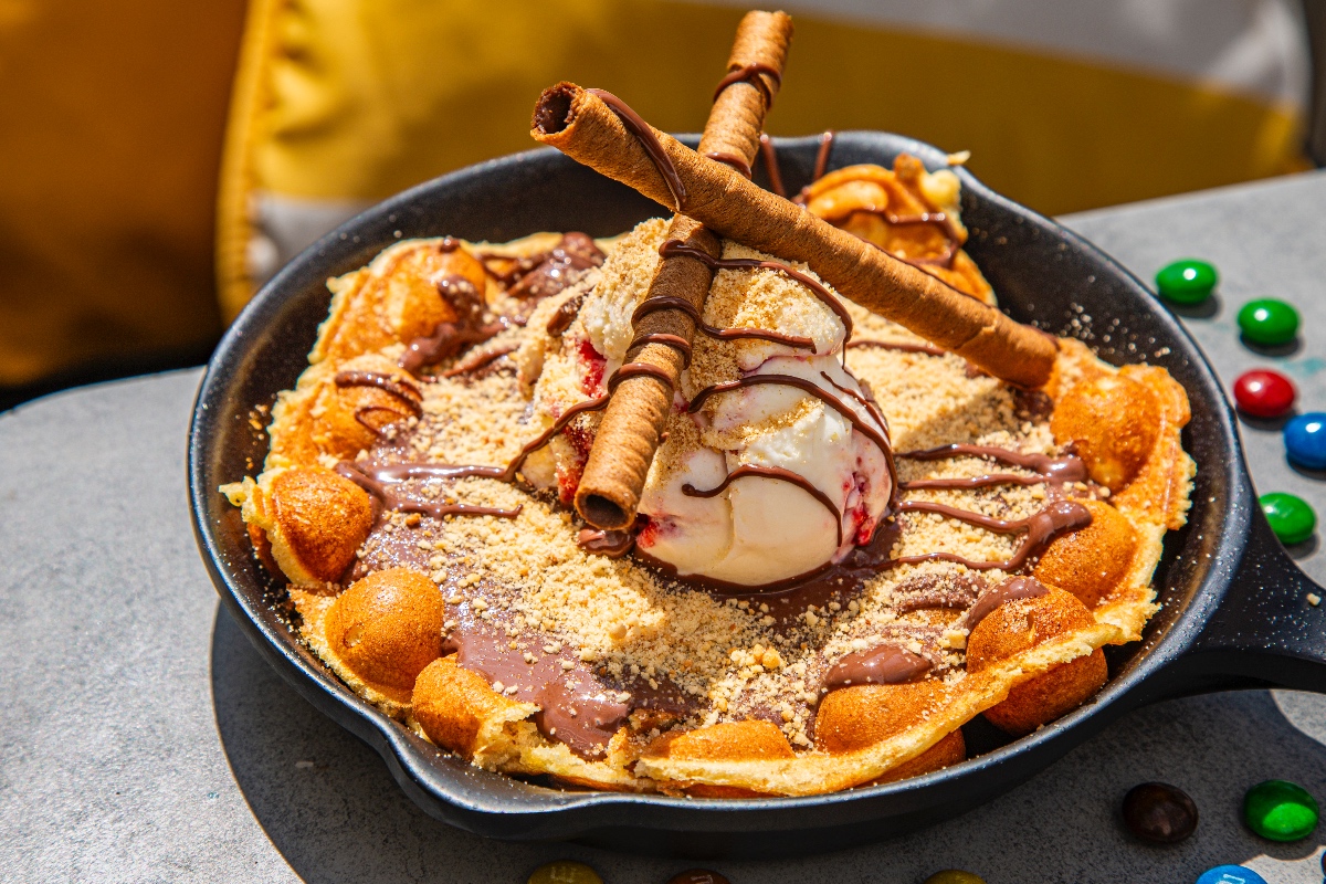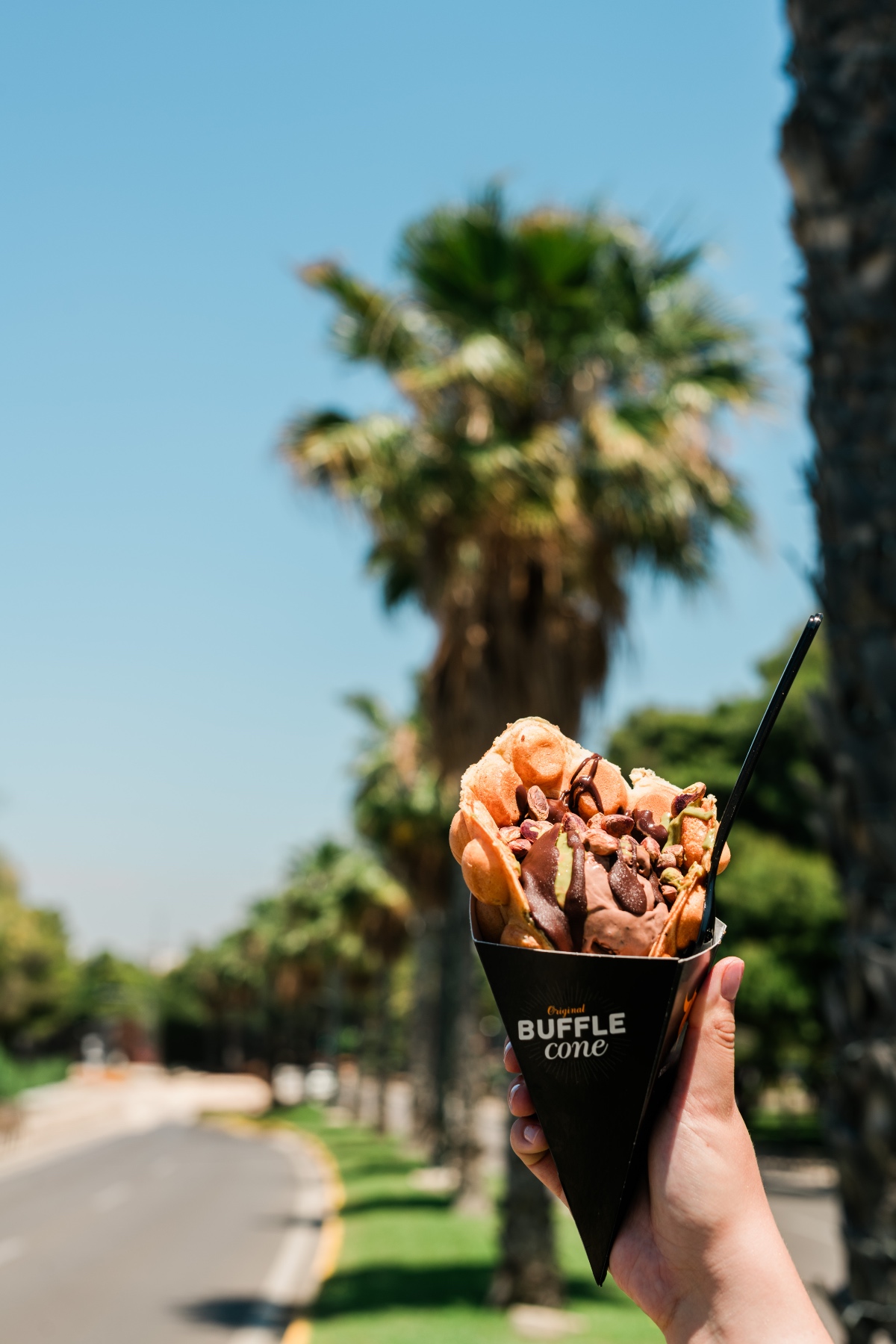 Μέσα σε bubble βάφλα, τη θρυλική Original Buffle Cone γεμάτη toppings – από φρέσκα φρούτα και σοκολάτες μέχρι σιρόπια και ξηρούς καρπούς – ή σε τραγανό σιροπιασμένο Τρίγωνο Πανοράματος, κάθε επιλογή εδώ είναι εμπειρία. Όσο για τις γεύσεις του παγωτού, οι προτάσεις είναι δεκάδες – ανάμεσά τους vegan γεύσεις και δροσερά sorbet – αλλά αν ψάχνεις κάτι πραγματικά… indulgent, σου προτείνουμε τη Dubai Chocolate, που κερδίζει τις εντυπώσεις με τον πλούσιο, σοκολατένιο και ιδιαίτερο χαρακτήρα της. Διαχρονικά αγαπημένες είναι επίσης το Red Velvet και η Nutella, που μας γυρίζει πίσω στις παιδικές αναμνήσεις, τότε που πραγματικά μετρούσαμε τα παγωτά ένα προς ένα!