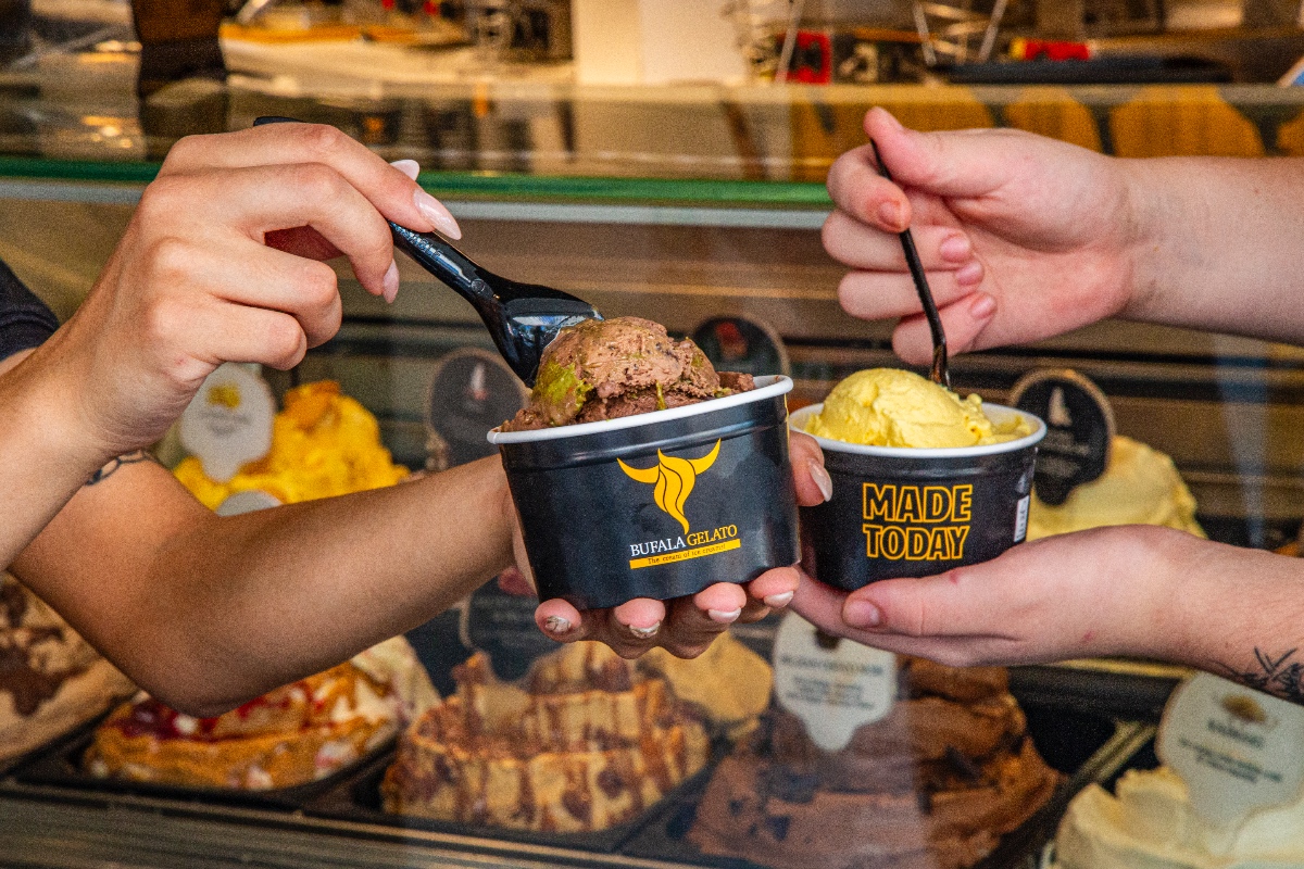 Όποια και αν είναι η θερμοκρασία, ένα πράγμα μετράει στ’ αλήθεια το καλοκαίρι: πόσα (και ποια) παγωτά φάγαμε. Και κάπου ανάμεσα σε βουτιές, βόλτες και δροσερές αποδράσεις στη Βουλιαγμένη, το Bufala Gelato γίνεται σταθερός γευστικός προορισμός. Το μυστικό; Το παγωτό του φτιάχνεται καθημερινά από φρέσκο βουβαλίσιο γάλα, προσφέροντας όχι μόνο κορυφαία γεύση αλλά και διατροφικά οφέλη: +40% πρωτεΐνη, +58% ασβέστιο, -30% ζάχαρη και -43% χοληστερόλη.