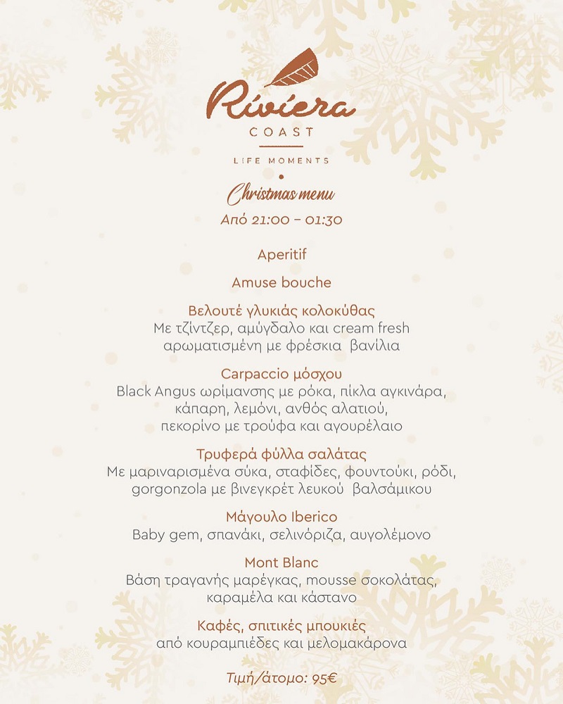 To Riviera Coast σε προσκαλεί για ρεβεγιόν Χριστουγέννων με θέα στη θάλασσα, σερβίροντας ένα πλούσιο μενού σε συνδυασμό με πολλή μουσική και χορό.