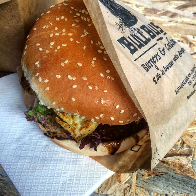 Τέλος, κλείσαμε με το BullBust Burgers & Cocktails και τα πρώτα δύο που πιάσαμε με το μάτι μας περιμένοντας στην ουρά. Γιατί ή την έχεις την αίσθηση ή δεν την έχεις. Φάγαμε λοιπόν, το Daniels Bust με Jack Daniels sauce και onion rings και το PB Bust με peanut butter και μπέικον. Το πρωτο είναι όσο λαχταριστό και εύγευστο φαίνεται στη φωτογραφία παρακάτω, ενώ το δεύτερο είναι η ευχάριστη έκπληξη για εκείνους που δεν ξέρουν αν θέλουν γλυκό ή αλμυρό σε αυτή τη ζωή.