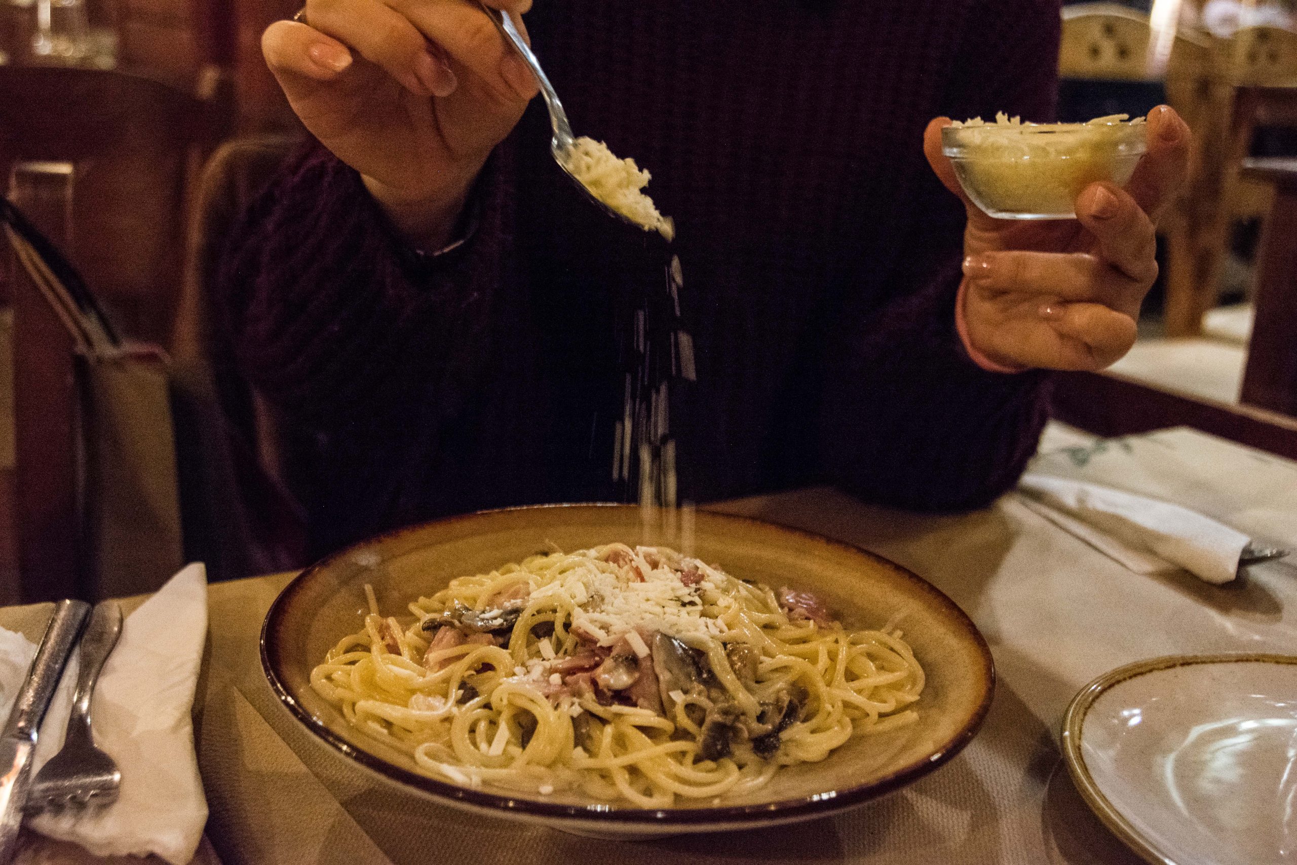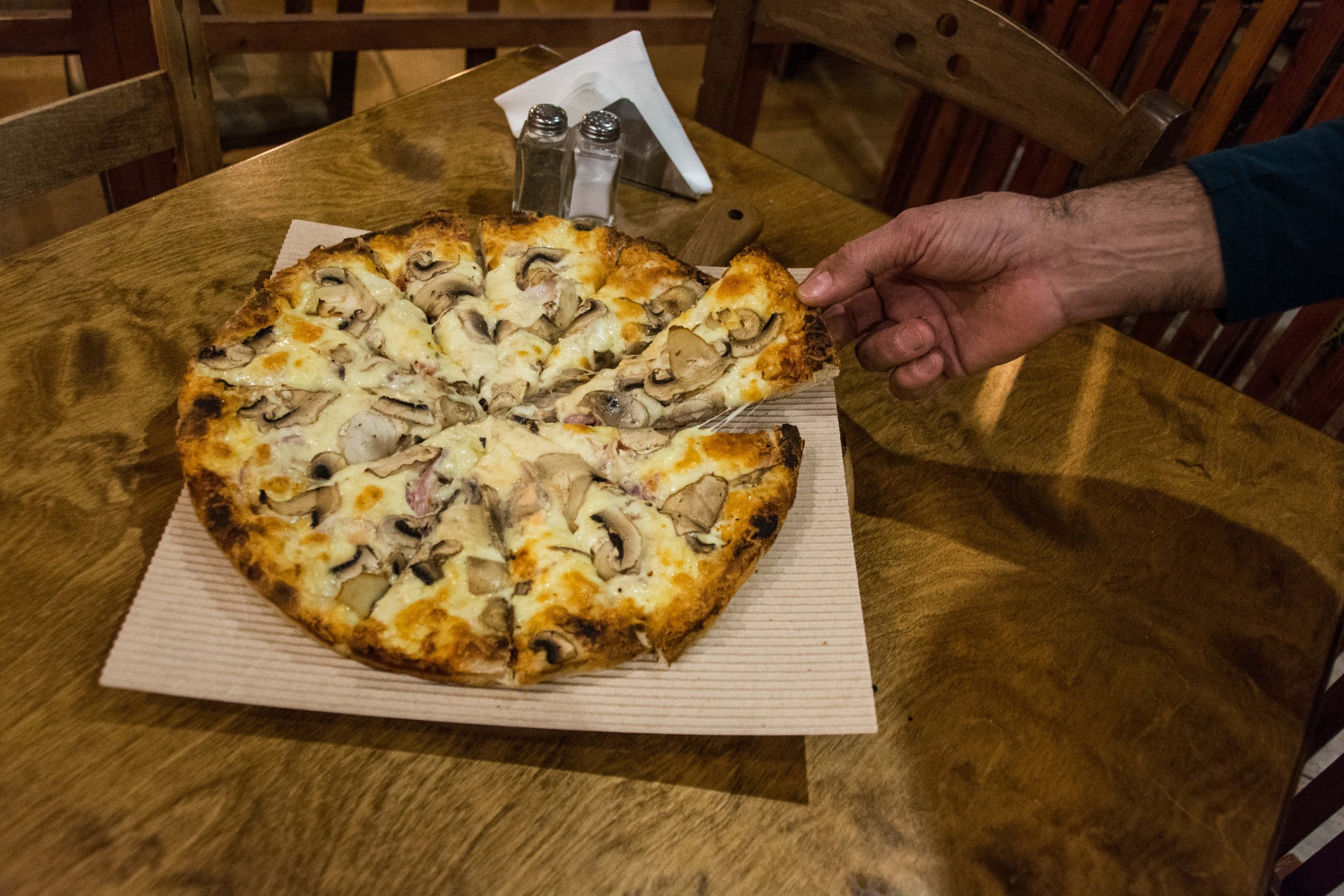 Και πράγματι, την περίοδο που πολλοί έκαναν εκπτώσεις στην ποιότητα και στις μερίδες, το Pizza land Μανιτάρι έμεινε σταθερό. Μερίδες γενναιόδωρες –τόσο που υπήρχαν παράπονα πως είναι μεγάλες– γεύσεις σπιτικές, πιάτα φτιαγμένα όπως θα τα έφτιαχνε κανείς στο σπίτι του. Ζυμάρι που ζυμώνεται καθημερινά στο χέρι, χωρίς κατεψυγμένες λύσεις. Υλικά πρώτης ποιότητας. Και πάνω απ’ όλα, προσωπική σχέση με τον πελάτη.