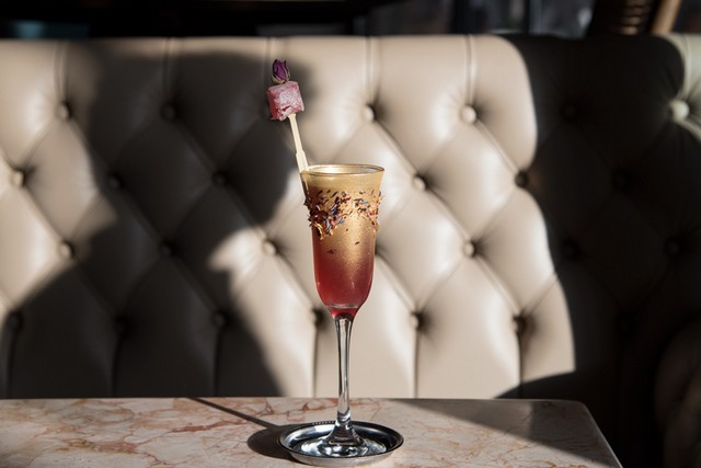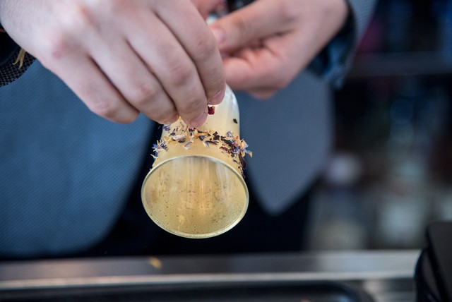 Ένα cocktail μαγευτικό, απλό με πολλά καντάρια γεύσης πάνω του. Τσάι από ιβίσκο, κράνμπερι, ketel one βότκα, grapefruit και ροζέ αφρώδης οίνος. Τα βάζεις στο ποτήρι, τα ανακατεύεις και τσουπ το cocktail παραμυθιού είναι έτοιμο. Ο Θάνος το συνόδευσε σε ένα εκπληκτικό presentation με ένα λουκούμι και κολλημένα στο ποτήρι μέρη του τσαγιού που χρησιμοποιήσαμε πριν.