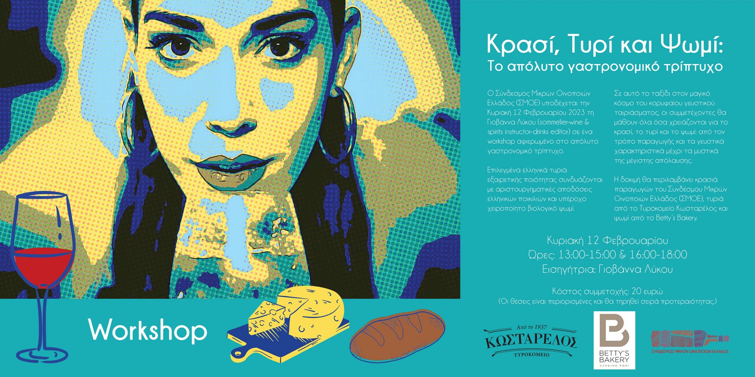 Ο Σύνδεσμος Μικρών Οινοποιών Ελλάδος (ΣΜΟΕ) υποδέχεται την Κυριακή 12 Φεβρουαρίου 2023 τη Γιοβάννα Λύκου (sommelier – wine & spirits instructor – drinks editor) σε ένα workshop αφιερωμένο στο απόλυτο γαστρονομικό τρίπτυχο.