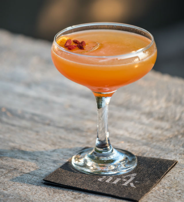 Συστατικά: Zacapa 23, rhum agricole, φρέσκο ζαχαροκάλαμο, french style rhum , χυμός Maracuja , lime , σιρόπι μελιού και Aperol.
