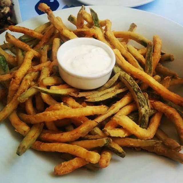 Το μόνο που έχουμε καταφέρει να ελέγξουμε με την παρέα μας είναι την παραγγελία. Και έτσι καταλήγουμε να τρώμε τον μισό κατάλογο και να αδειάζουμε τα αποθέματα σόδας. Αν υπάρχει μια σταθερά, όμως, αυτή είναι τα τηγανητά κολοκυθάκια. Με σως γιαουρτιού, ή τζατζίκι, όπως το προτιμάει κανείς. Δεν είναι υπερβολή, όμως, να πιαστούμε όλοι μαζί χέρι-χέρι, να τεντώσουμε το λαιμό και να φωνάξουμε ότι “ΕΙΝΑΙ ΤΑ ΚΑΛΥΤΕΡΑ ΚΟΛΟΚΥΘΑΚΙΑ ΕΚΕΙ ΕΞΩ”.
