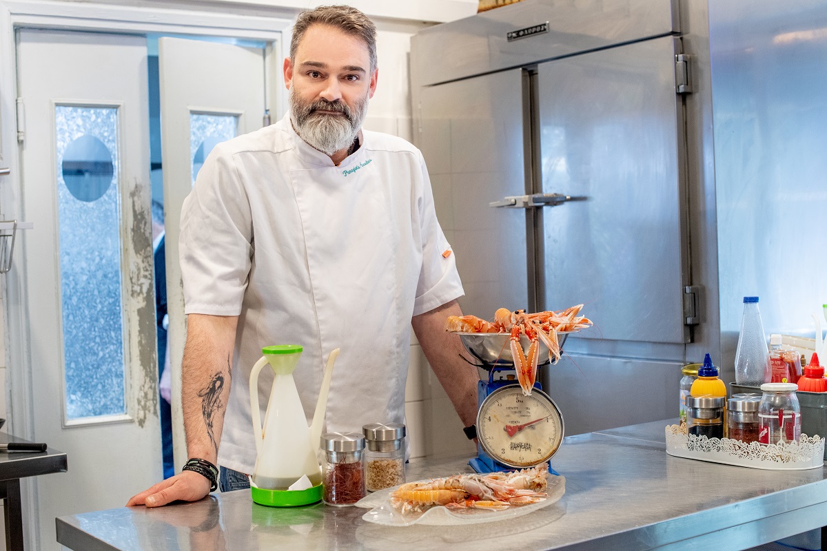 Ο Παναγιώτης από την άλλη, έχει ολοκληρώσει την καθημερινή του εξόρμηση στην αγορά -πηγαίνει ο ίδιος και επιλέγει τις πρώτες ύλες μία προς μία ή παραλαμβάνει την ψαριά από τα καΐκια με τα οποία συνεργάζονται για να τους προμηθεύουν φρέσκα ψάρια και θαλασσινά- και έχει μπει στην κουζίνα για να μαγειρέψει. Ο Παναγιώτης είναι το χέρι πίσω από όλα όσα θα δοκιμάσεις εδώ, φροντίζοντας από τη μία να διατηρεί τον παραδοσιακό χαρακτήρα της ταβέρνας και από την άλλη να την εξελίσσει, προσθέτοντας τις δικές του σύγχρονες πινελιές, που ενσωματώνονται όπως πρέπει στο μενού.
