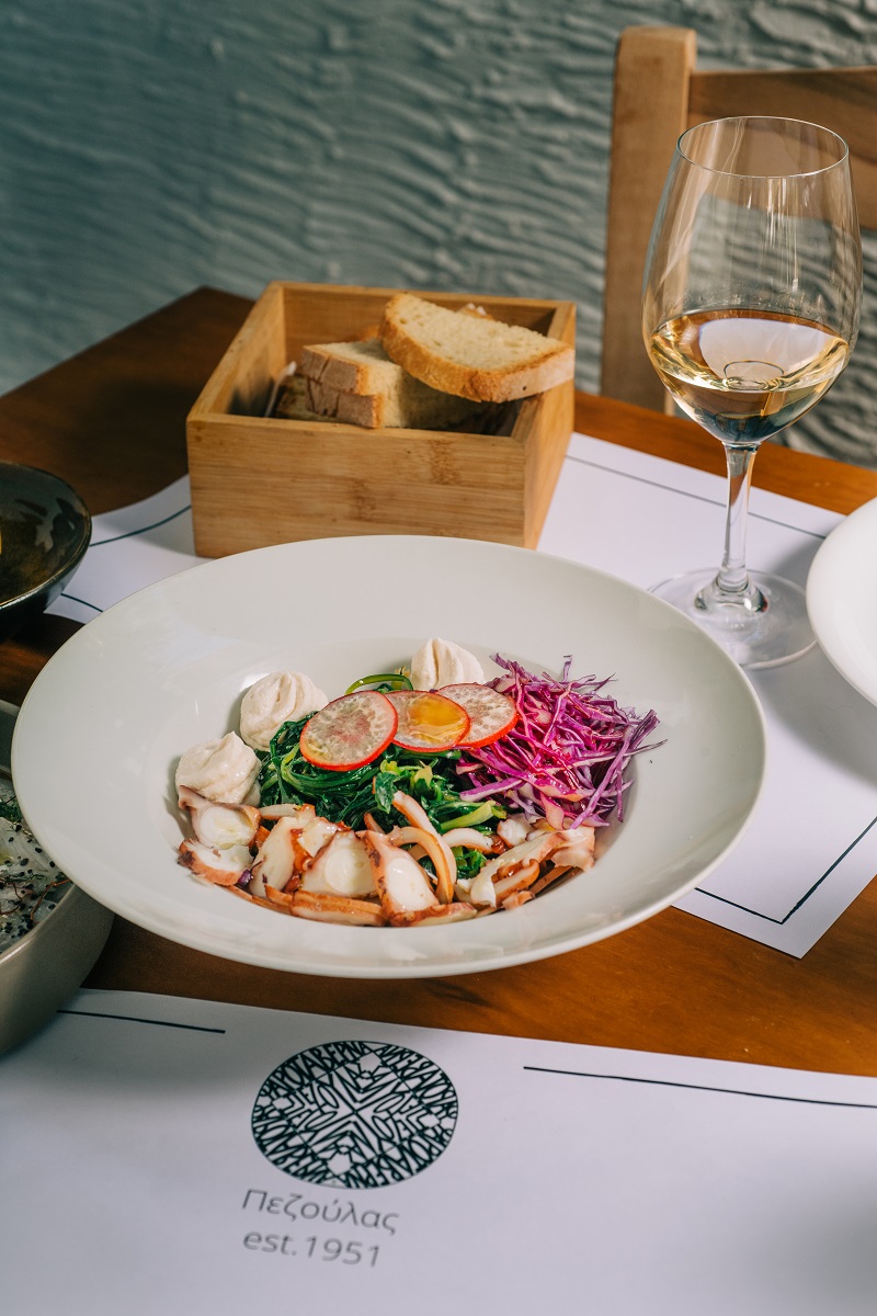 Με αυτές τις απορίες φτάσαμε ένα μεσημέρι καθημερινής δίπλα στο ΚΠΙΣΝ, για να δοκιμάσουμε τις νέες θαλασσινές σπεσιαλιτέ του Πεζούλα. Η επιλογή της ώρας δεν είναι τυχαία, αφού από τις 2 το μεσημέρι που ανοίγει η κουζίνα δεν καταλαβαίνεις για πότε γεμίζουν τα τραπέζια, ενώ αν αντί για καθημερινή επιλέξεις να πας Σαββατοκύριακο και χωρίς κράτηση, είναι σχεδόν βέβαιο ότι θα είναι όλα κλεισμένα. Η μικρή αυλή μπροστά, που παραπέμπει σε ταβέρνα στις Κυκλάδες, μοιάζει ιδανική επιλογή τώρα που ο καιρός ανοίγει αν και η ανακαινισμένη σάλα μέσα έχει μια ωραία, δική της αύρα που επίσης σε κερδίζει.