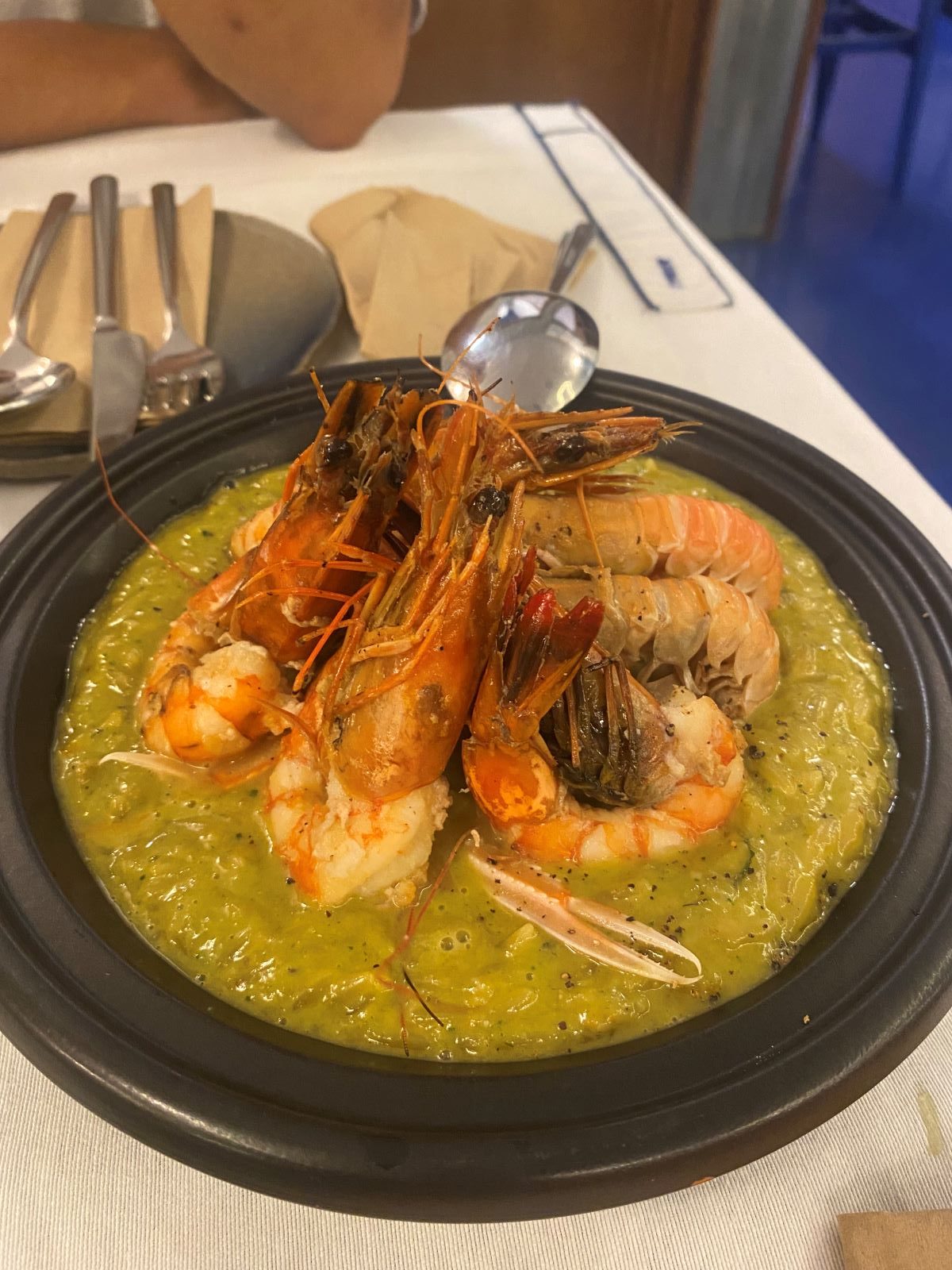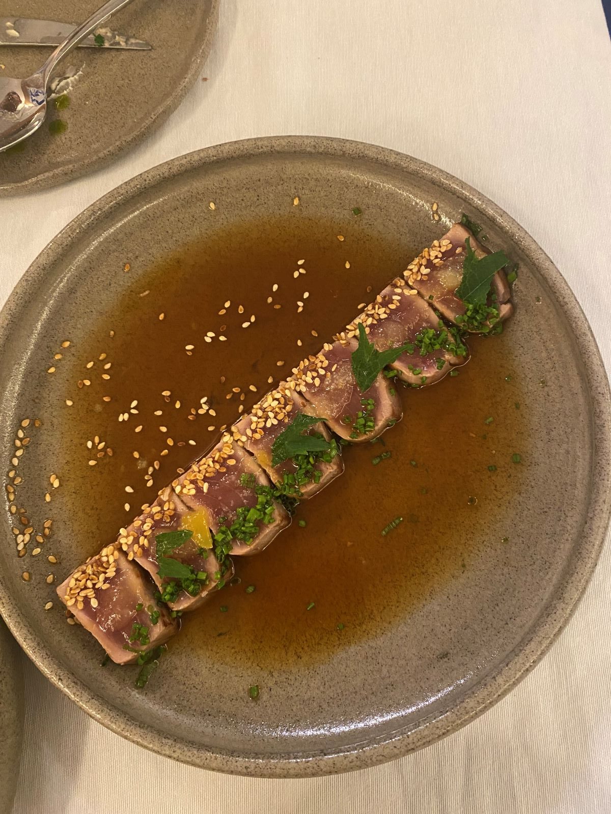 Το tataki τόνου με ponzu, μαρμελάδα λεμονιού και σουσάμι ήταν χείμαρρος φρεσκάδας και γεύσης. Όταν έφτασε το κριθαρότο με γαρίδες Κοιλάδας και καραβίδες με τον ζωμό τους και την παρμεζάνα Cavola, ο σεφ βγήκε να μας πει να φάμε την καραβίδα με το χέρι – αλλά τον είχαμε προλάβει ήδη.