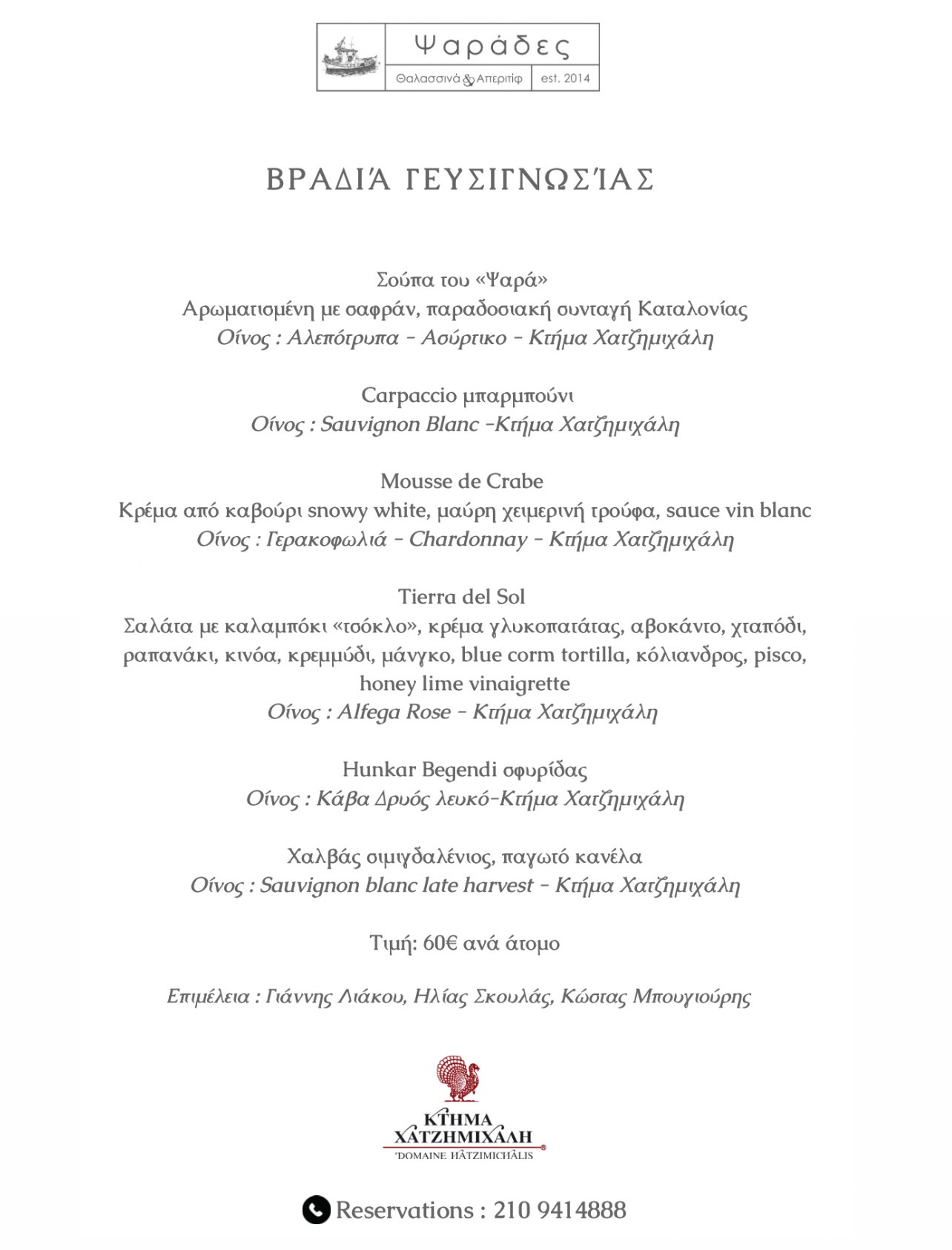 Τιμή ανά άτομο: 60 ευρώ