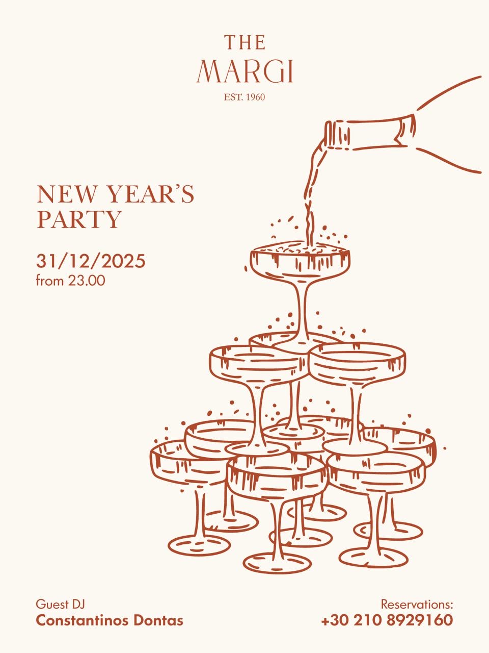 To Margi, η all time classic εμπειρία boutique hotel της Αθηναϊκής Ριβιέρας, μας υποδέχεται την τελευταία νύχτα του χρόνου σε ένα λαμπερό New Year’s Eve Party. Λίγο πριν τα μεσάνυχτα γιορτάζουμε τον ερχομό του 2026 σε μια βραδιά γεμάτη μουσική με έναν special Guest πίσω από τα decks του The Margi Hotel και όπως όλα δείχνουν, θα είναι το πάρτι της χρονιάς!