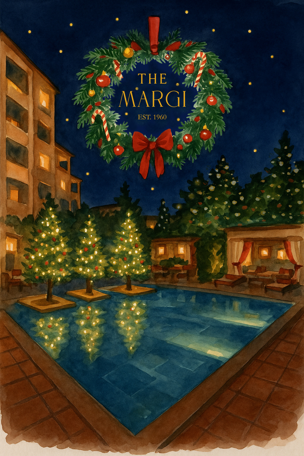 Το The Margi Hotel γιορτάζει επίσης την παραμονή των Χριστουγέννων στις 24 Δεκεμβρίου με ένα ξεχωριστό χριστουγεννιάτικο dinner, αλλά και ανήμερα των Χριστουγέννων (25/12) και της Πρωτοχρονιάς (1/1) με ειδικά διαμορφωμένα, άκρως γιορτινά buffets.
