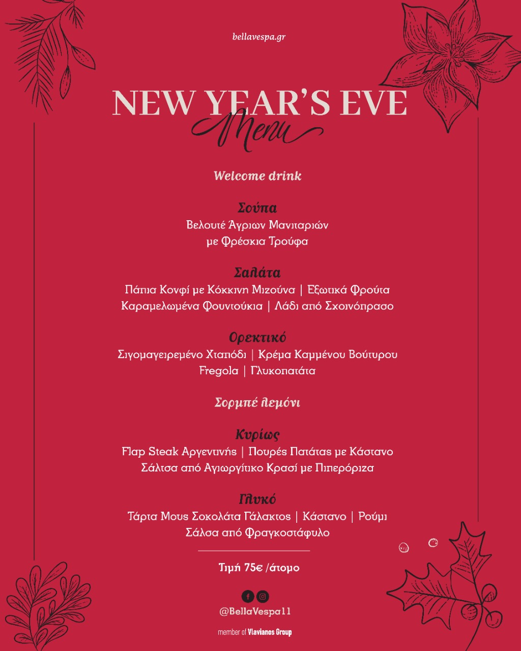 Το Bella Vespa σε προσκαλεί να υποδεχθείτε μαζί τον νέο χρόνο, σε μία βραδιά γεμάτη απολαυστικές γεύσεις και άκρως γιορτινή ατμόσφαιρα.
