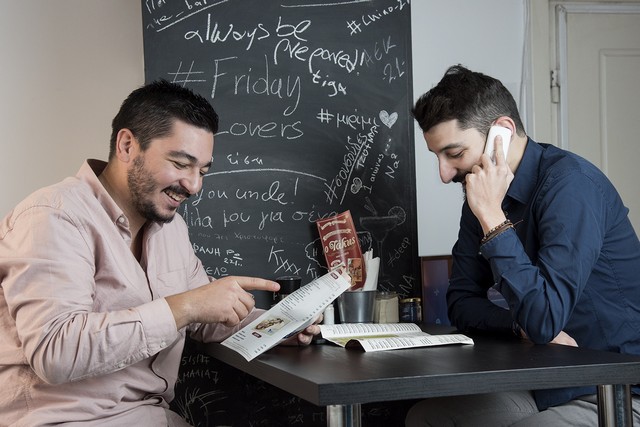 Τρία λεπτά αργότερα, τα πάντα ήταν στη θέση τους. Τα τυλιχτά στα πιάτα, οι μερίδες γιαουρτλού και κεμπάπ σερβιρισμένες κι αυτές, και οι πατάτες στη μέση, να κερδίζουν πάντα την παράσταση. Για τα επόμενα δέκα λεπτά, το μόνο που ακουγόταν ήταν μουγκρητά ευχαρίστησης και απόλαυσης. Ρωτάω τον Χριστόφορο “Καλό το πίτα κεμπάπ;”, “Φάε λουκάνικο όπως και δήποτε” μου απαντάει. Του λέω “Δοκίμασε τον γύρο”, “είμαι ερωτευμένος με αυτό το κεμπάπ γιαουρτλού” μου απαντάει. Κάπως έτσι συνεχίστηκε ο υψηλού επιπέδου διάλογος μέχρι να μείνουν μόνο τα χαρτιά με τα οποία είχε τυλίξει ο Τάκης τα σουβλάκια.