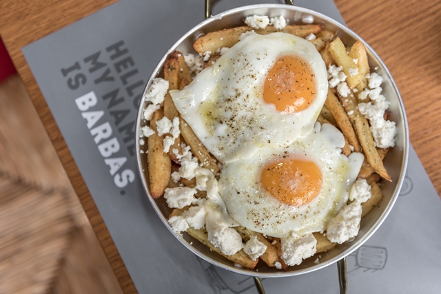Αλλά ας περάσουμε στο παρασύνθημα. Γιατί ο Barbas δεν είναι για πολλά λόγια αλλά περισσότερο για πράξεις…ακατάσχετης μάσας! Το τυλιχτό εδώ έχει την τιμητική του (όσο πιο νόστιμο το σουβλάκι και ζουμερό το κρέας τόσο πιο γρήγορα τρώγεται, θα πω εκ πείρας) περιστοιχισμένο από ένα πολύ ενδιαφέρον μενού που έχει επιμεληθεί ο chef Βαγγέλης Λεούσης. Γιατί ο Barbas δεν μένει μόνο στο τυλιχτό. Περνάει στην επίθεση με το πεντανόστιμο hot dog του, τη ζουμερή χοιρινή μπριζόλα και τις πατάτες τηγανητές με φέτα και αυγό, τρία πιάτα highlights του μαγαζιού.
