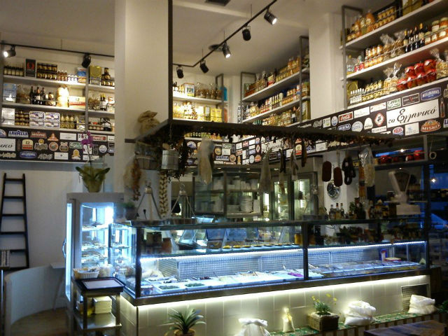 Κι είναι όλα στιβαγμένα στον ανοιχτό εσωτερικό χώρο. Αυτόν που φέρει την τεχνοτροπία του παλιού “μπακάλικου”. Με προϊόντα στα ράφια και αλλαντικά να κρέμμοντα στους τοίχους. Ένας ευρύχωρο και άνετο περιβάλλον, που σε βάζει αμέσως στο νόημα και στο ύφος του μαγαζιού, κερδίζοντας ακόμη και τους πιο απαιτητικούς. Άλλωστε η όλη ιδέα εμπνέει μια οικειότητα, μια άνεση. Και ένα πνεύμα του… εδώ θα βρεις ότι ψάχνεις (ή δεν έχεις ξανακούσει) σχετικά με την ελληνική κουζίνα.