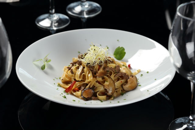 Το μάτι μου με δυσκολία προσπερνά πιάτα όπως το λαβράκι με κρούστα μυρωδικών, αλμυρίκια και αφρό αυγολέμονο, ή τον ελληνικό αστακό, και πάει απευθείας στις ταλιατέλες. Οι συγκεκριμένες βέβαια, δεν μοιάζουν με πολλές που μπορεί κατά καιρούς να έχεις δοκιμάσει. Συνοδεύονται με μοσχαράκι Black Angus, σόγια, τρούφα και ξινομυζήθρα Κρήτης, μπλέκοντας πολλές κουλτούρες μαζί για ένα αριστοτεχνικό γευστικό αποτέλεσμα.
