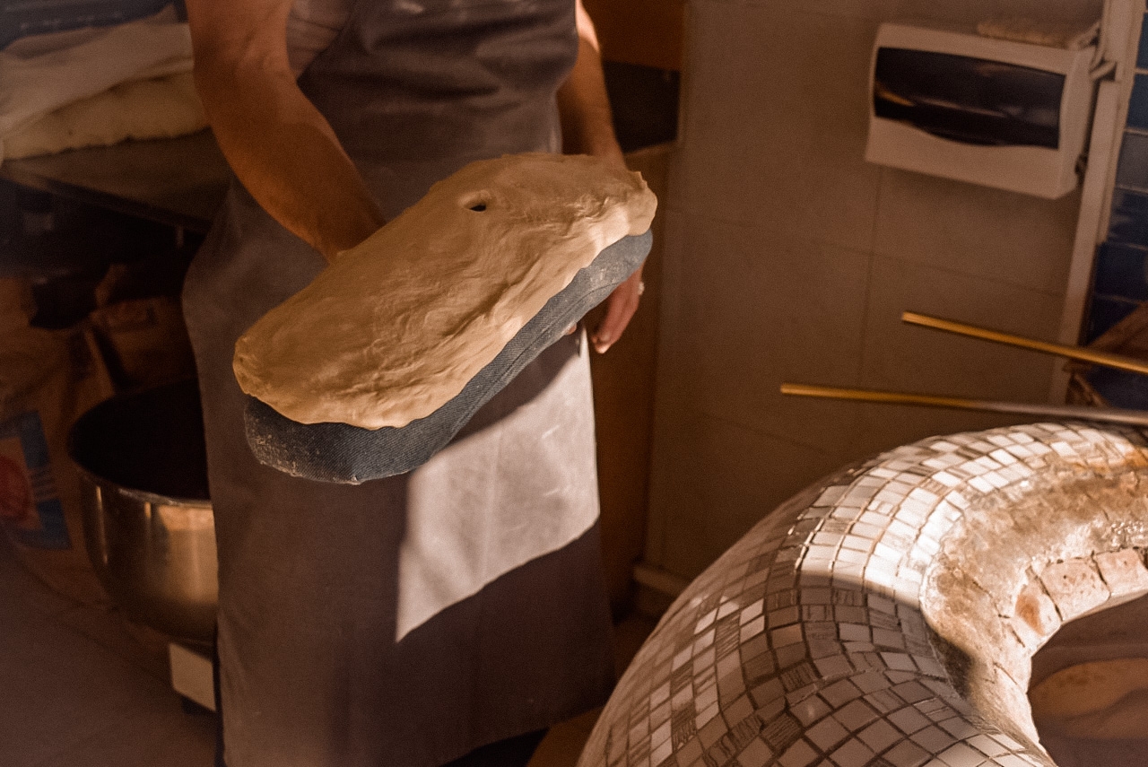 Όσο για τη «βουτιά» του φούρναρη στο τονέ, αναγκάζεται να μπαίνει ο μισός μέσα προκειμένου να τοποθετήσει το ζυμάρι στα τοιχώματα του φούρνου. Ουσιαστικά, ο ίδιος τοποθετεί πρώτα το ζυμάρι σε ειδικά μαξιλαράκια, στη συνέχεια το κολλά, με μία θα λέγαμε ακροβατική κίνηση, στα καυτά τοιχώματα του φούρνου, την ώρα που στον πάτο η φωτιά που ανάβει με γκάζι καίει, και περίπου δέκα λεπτά αργότερα, έχουν ψηθεί και είναι έτοιμα να βγουν. Πώς; Με τη βοήθεια ειδικών μεταλλικών εργαλείων, που μοιάζουν με τσιμπήδες και γραπώνουν το ψωμί, ώστε να μη χαλάσει η μορφή του και να τοποθετηθεί ακέραιο στα ράφια.