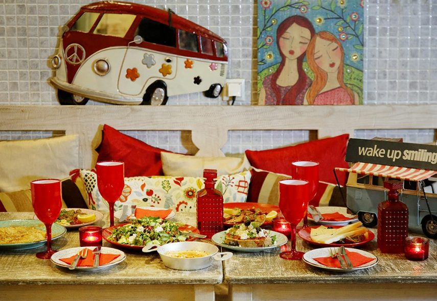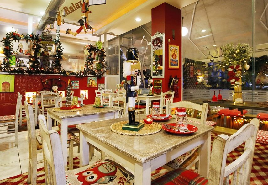 Το πολύχρωμο και «χουχουλιάρικο» εσωτερικό του, γεμάτο γουστόζικα διακοσμητικά (που αυτήν την περίοδο έχουν μπει σε κλίμα Χριστουγέννων), εκπέμπει μια πολύ γλυκιά, φιλική αύρα, δίνοντας παράλληλα και μια πρώτη γεύση της προσωπικής ενασχόλησης των ιδιοκτητών αλλά και της αγάπης τους για το μαγαζί τους. «Τη διακόσμηση την επιμελείται αποκλειστικά η Ελίζα». Εννοείται πως αυτή είναι μόλις μία από τις αρμοδιότητές της, καθώς μαζί με τον Πέτρο ψωνίζει, μαγειρεύει και σερβίρει, κοινώς λίγο (ή μάλλον, πολύ) απ’ όλα. Άλλωστε όλα στο Μικιό είναι οικογενειακή υπόθεση.