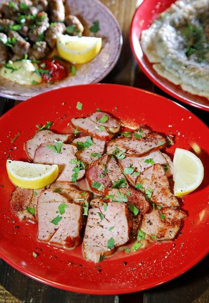 Κρέατα, τυριά και πίτες, φερμένα από το νησί. «Έρχονται όλα απευθείας από την Κρήτη, εκτός από τα λαχανικά. Είχαμε προσπαθήσει μία περίοδο να φέρνουμε ακόμα και αυτά, όμως αποδείκτηκε ανέφικτο». Στα του τυριού, θα διαλέξεις ανάμεσα σε κρητική γραβιέρα, λαδοτύρι, μυζήθρα, ξηρό ανθότυρο κ ενα ιδιαίτερο τυρί το αορη με φρέσκο πιπέρι.