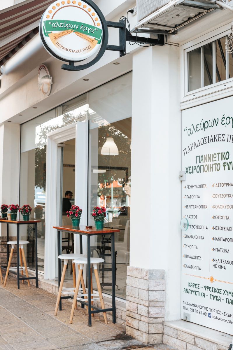 Αλεύρια στα χέρια, στην ποδιά, στον πάγκο. Μυρωδιές που σου σπάνε τη μύτη, τα φρέσκα χορταρικά σχολαστικά πλυμμένα στη λεκάνη. Γεύσεις από το χέρι της αγαπημένης σου γιαγιάς, που ανοίγει με μία ανεπιτήδευτη μαεστρία το πιο ωραίο φύλλο. Κάτι τέτοιες αναμνήσεις σου έρχονται στο μυαλό περνώντας το κατώφλι του Αλεύρων Έργα στην Καλλιθέα.