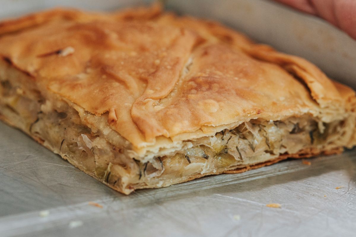 Τα υλικά χώνονται μαεστρικά μέσα στο παραδοσιακό γιαννιώτικο φύλλο, που ανοίγεται με τη βέργα. Την τεχνική την έμαθαν από τη μητέρα και τις γιαγιάδες τους. Είναι κρατσανιστό με πολύ ωραίες στρώσεις για να το νιώθεις σε κάθε μπουκιά. Τρώγεται πολύ ευχάριστα και τη δεύτερη μέρα – με την προϋπόθεση ότι θα καταφέρεις να αντισταθείς και θα αφήσεις λίγο για τότε.