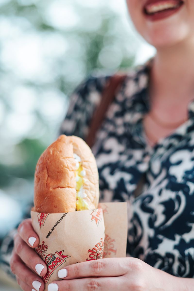 Τη ρωτάω απευθείας τι μου προτείνει και χωρίς δεύτερη σκέψη μου λέει «Αν θες κάτι κλασικό πάρε το American Dog, αν θες κάτι ελαφρώς καυτερό δοκίμασε το Gouda Cheese Dog, ενώ αξίζει να δοκιμάσεις και το χορτοφαγικό Danais». Α, ναι! Στο Johnie θα βρεις, μεταξύ άλλων, και vegetarian σάντουιτς, που έρχονται σε τρεις εκδοχές με λουκάνικο χορτοφαγικό Βιέννης.