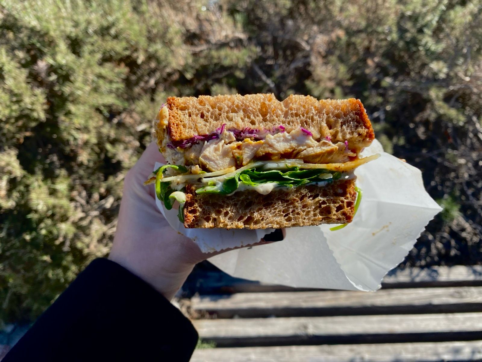 Κάπου εκεί χαζεύοντας τη βιτρίνα, βλέπω την αγαπημένη μου επιλογή: Truffle chicken sandwich με κοτόπουλο, κόκκινο λάχανο, γραβιέρα και μαγιονέζα τρούφας. H τελευταία κάνει το σάντουιτς ακαταμάχητο. Δεν είναι υπερβολική –το άρωμα της τρούφας είναι διακριτικό, αρκετό για να απογειώσει το πιάτο χωρίς να καλύπτει τα υπόλοιπα υλικά. Και όσο για το ψωμί, έχει αυτή την τέλεια αφράτη και μαλακή υφή, ενώ βγαίνει απευθείας ολόφρεσκο από το εργαστήρι τους.