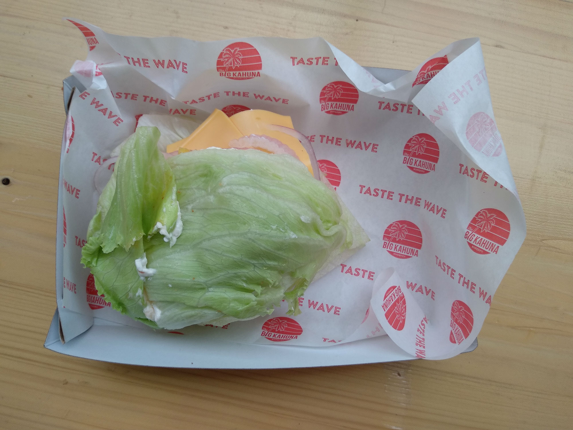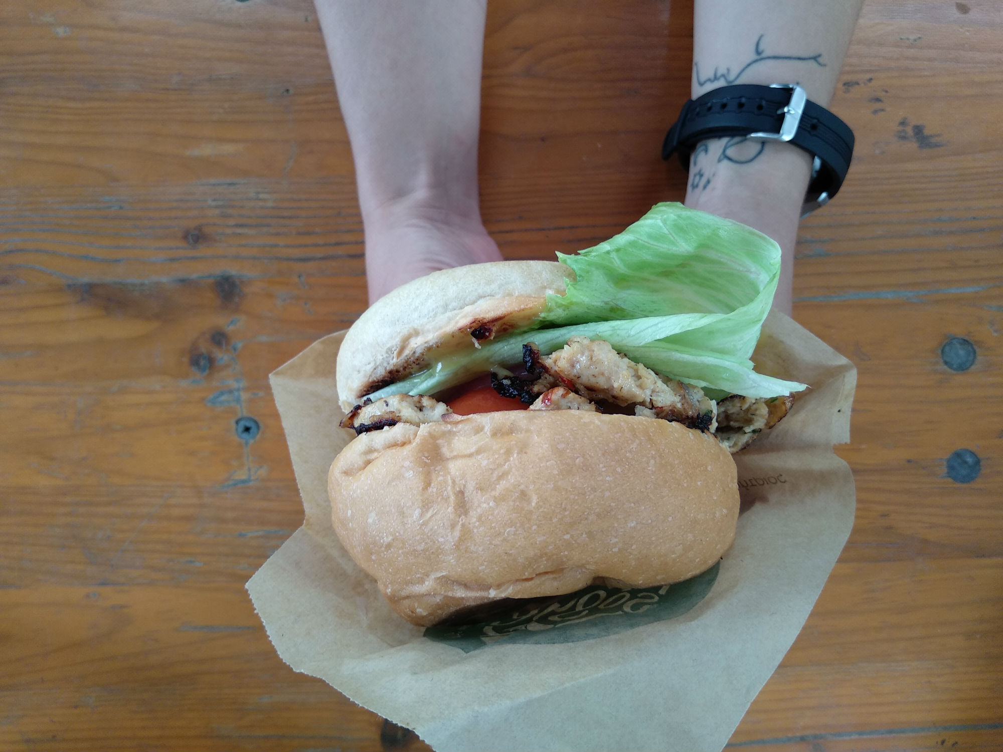Βέβαια ήταν και το ντεκόρ εξωτικό, οπότε και τραβηχτικό κι ας μας παρατηρούσε ένας φουσκωτός κροκόδειλος από ψηλά. Αφού φωνάξαμε ολάκερη η ουρά τον άνθρωπο με το νούμερο 19 (που ήσουν ρε αδερφέ;) πήρα στα χέρια μου το burger χωρίς… ψωμάκια. Έτσι για να σπάσω το κατεστημένο. Με highlight τον ψιλοκομμένο ανανά.