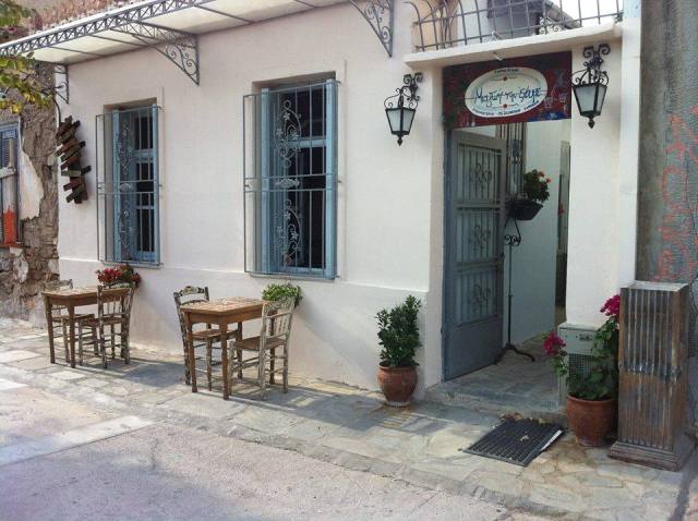 Κοντά στο Μεταξουργείο και αυτό. Τσιπουράδικο με ατμόσφαιρα φοιτητική ακόμη και αν είσαι 30. Σαν να είσαι σε μαγαζί σε νησί ή σε μεζεδοπωλείο στην παλιά Αθήνα. Πάνω από το κεφάλι σου ένα σκάφανδρο, πιο κει μια λατέρνα και παντού γενικά αντικείμενα παλιά. Όλοι πίνουν κρασιά και λοιπά μεθυστικά ή τρώνε, αλλά κυρίως όλοι τραγουδάνε. Πριν το χάραμα και τέτοια. Ρεμπέτικα. Δυνατά. Μαζί με τα παιδιά που κάνουν τα live. Έχει και έναν τέλειο ανοιχτό χώρο απέναντι με βότσαλο κάτω και καρέκλες χρωματιστές. Σαν να είσαι στην αυλή του σπιτιού της γιαγιάς σου. Σοβαρά σου μιλάω. Ακόμη και το στενάκι που βρίσκεται θυμίζει άλλες εποχές. Πρέπει να το δεις.