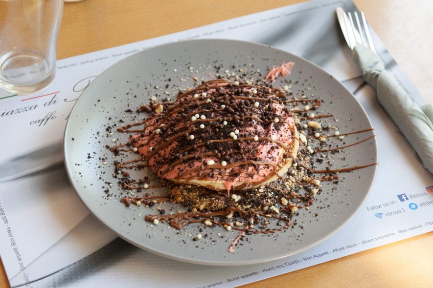 Πάντως, σε δυνατούς παίκτες απευθύνεται και το brunch menu του Piazza di Ritrovo. Καθημερινά, από τις 10 το πρωί μέχρι τις 5 το απόγευμα, εδώ θα βρεις αμέτρητες επιλογές: Από τα καλοψημένα πεϊνιρλί του Ritrovo, μέχρι πιάτα με αβγό (όπως το εντυπωσιακό egg brunch που αποτελείται από τρεις στρώσεις διπλοφουρνισμένου ψωμιού με ζαμπόν, τυρί, γαλοπούλα και μπέικον, και πάνω τους ένα τηγανητό αβγό μάτι), αλμυρά και γλυκά pancakes (με τα Bueno, Lila Pause και Caprice να είναι πραγματική υπερπαραγωγή), αλλά και υγιεινές προτάσεις, όπως τα pancakes με ταχίνι, μπανάνα και μέλι ή εκείνα που φτιάχνονται από νιφάδες βρώμης και σερβίρονται με κανέλα, μέλι και goji berries.