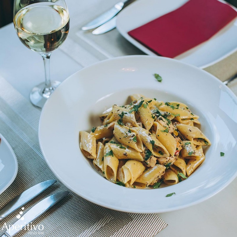 Στην καρδιά της Γλυφάδας, λίγο δίπλα από την πλατεία Εσπερίδων, συναντάς το ιταλικό εστιατόριο Aperitivo. Όταν το επισκέφτηκα τις προάλλες, επέλεξα να δοκιμάσω μια από τις μακαρονάδες του. Ανάμεσα στην ποικιλία που διαθέτει, διάλεξα τις πέννες με κοτόπουλο και τα μανιτάρια Porcini. Αν και δεν αγαπώ ιδιαίτερα την τρούφα, η μακαρονάδα περιείχε πάστα τρούφας και αυτό ήταν που τελικά απογείωσε για μένα το πιάτο: η επίγευσή της. Σε συνδυασμό με ένα ποτήρι λευκό κρασί, η μακαρονάδα αυτή είναι η ιδανική επιλογή για ένα χαλαρό γεύμα -και καθόλου μπουχτιστικό. Προτείνω επίσκεψη εκεί βράδυ καθημερινής, που η κίνηση είναι πιο πεσμένη και μπορείς να απολαύσεις την, αγαπημένη μου πλέον, μακαρονάδα μετά από μια κουραστική μέρα στη δουλειά.