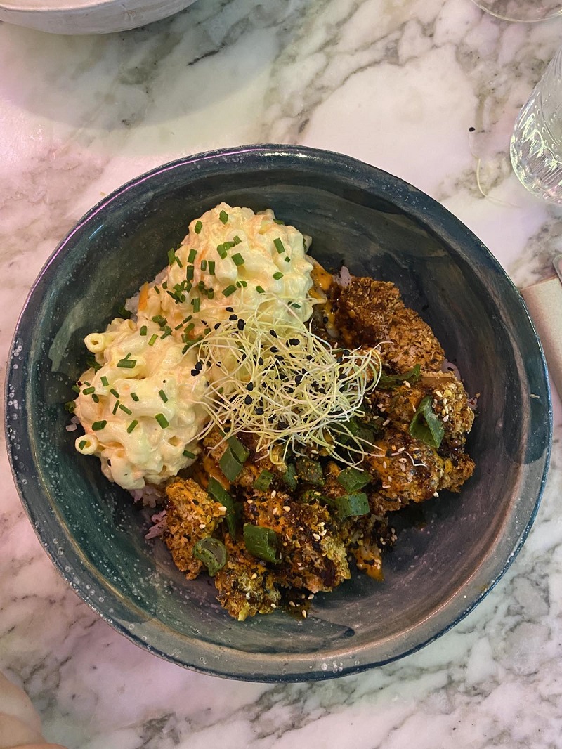 Να ξεκαθαρίσω σε πρώτη φάση πως δεν είμαι vegan ούτε κατά διάνοια. Παρόλα αυτά θα μιλήσω για το πιάτο «Dynamite» του «Winners» στο Σύνταγμα και θα πω πως η έκφρασή μου τα πρώτα δευτερόλεπτα της δοκιμής περιγράφεται με μια μόνο λέξη: σοκ! Ένα πιάτο- όνομα και πράγμα, σωστός δυναμίτης. Είναι πικάντικο τόσο όσο και περιλαμβάνει έναν συνδυασμό διαφορετικών υλικών που δένουν με τρόπο που το μυαλό σου δεν διανοείται αρχικά. Είναι τόσα τα υλικά και η λεπτομέρεια που σε κάποια φάση σκεφτόμουν πως «δεν ξέρω καν τι τρώω, αλλά ειλικρινά δεν έχει καμία απολύτως σημασία». Περιλαμβάνει κομματάκια που θυμίζουν τηγανητό κοτόπουλο, αλλά φτιάχνονται από αλεύρι ρεβιθιού πλασμένο με ζωμό λαχανικών και μπαχαρικών. Τα συνοδεύει ρύζι για σούσι που περιχύνεται με «φουρικάκε», ένα μείγμα που φτιάχνεται από διαφορετικά φύκια, ενώ περιλαμβάνει σιρόπι από μίσο και σιρόπι αγαύης, καθώς και μια κρύα σαλάτα από κοφτό μακαρονάκι και χειροποίητη, spicy μαγιονέζα. Τι σου λέω όμως κι εσένα τώρα, λες και παρουσιάζω το πιάτο μου στους κριτές. Δεν έχω τι άλλο να πω, απλά τρέξε να το δοκιμάσεις και σημειώστε στα plus το μέγεθος της μερίδας, που με έκανε και πέρασα το κατώφλι σκασμένη και κάτι παραπάνω από ικανοποιημένη.