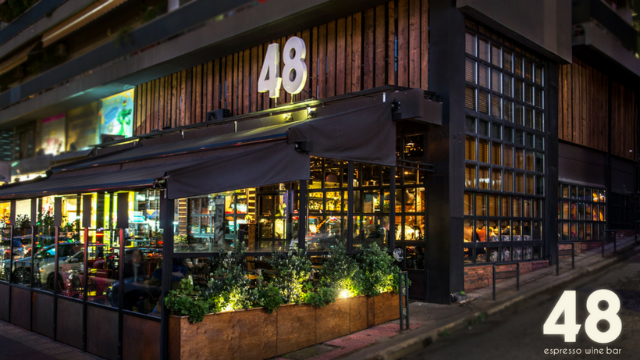 Το 48 Espresso Wine Bar σε μαθαίνει να πίνεις καλό καφέ. Προτείνουμε να δοκιμάσεις τους μονοποικιλιακούς cappuccino και espresso αλλά σε γενικές γραμμές να ξέρεις πως υπάρχουν 3 κύριες ποικιλίες ανάλογα το πόσο ελαφρύς ή δυνατός θες να είναι ο καφές σου, γλυκός ή ήπιος σε γεύση κοκ Είναι ένας all day χώρος όπου ο χρόνος κυλάει διαφορετικά. Μπορεί να τον επισκεφτείς για πρώτη φορά για έναν γρήγορο καφέ και τελικά να καταλήξεις να φεύγεις αργά το βράδυ, #truestory.