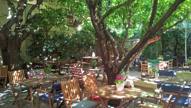 Η καταπράσινη αυλή της ιστορικής αυτής οικογενειακής ταβέρνας, η μοναδική στην περιοχή που στεγάζεται σε ένα κτίσμα του 1900 και σε κάνει να αισθάνεσαι ότι τηλε-μεταφέρθηκες κάπου στην ελληνική επαρχία, την καθιστά ιδανική επιλογή για χαλαρά καλοκαιρινά απογεύματα. Εξίσου με τα δυο -πάντα αναμμένα- τζάκια που βρίσκει κανείς στο εσωτερικό. Άλλωστε λίγη δροσιά σου χρειάζεται προκειμένου να απολαύσεις ανενόχλητος τα βραβευμένα παϊδάκια της και ένα κοντοσούβλι όμοιο του οποίου δύσκολα θα συναντήσεις αλλού.