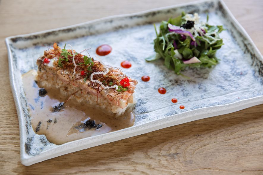 Το Crunchy Dream όπως λέει και το όνομα του είναι τραγανό ρολό με γέμιση δέρμα σολομού. Το δέρμα σολομού αφού πρώτα τηγανιστεί, στη συνέχεια τυλίγεται στο ρολό και πανάρεται. Από το πιάτο αυτό δεν λείπουν και οι ελληνικές πινελιές όπως το κρέμα τυρί και το αγγούρι, ενώ το καψαλισμένο ταρτάρ από σολομό, τα chips από noodles και το φρέσκο κρεμμύδι ενισχύουν αυτή την πολύ τραγανή υφή του. Είναι αυτό που λέμε με λίγα λόγια το τραγανό ρολό του ονείρου.