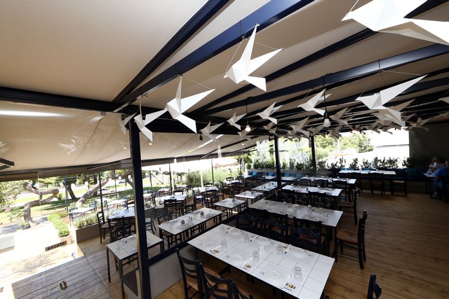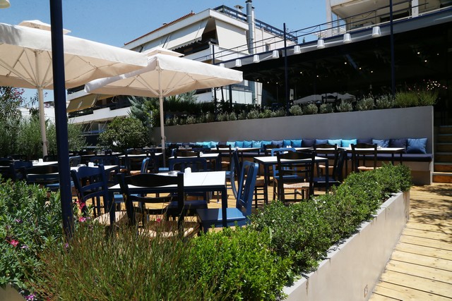 Και στα δύο κυριαρχεί το μπλε με πινελιές που σε ταξιδεύουν αμέσως σε νότιο-κυκλαδίτικο σκηνικό. Στη Βουλιαγμένη θα δεις στον εσωτερικό χώρο -εκτός από τις μεγάλες σανίδες που στέκονται αγέρωχες- να κρέμονται και “χάρτινοι” γλάροι. Από την άλλη στην Βάρκιζα το μικρό εσωτερικό έχει “χάρτινα” καραβάκια, αλλά το έξω του σε κάνει να νιώθεις ότι τρως σαν άρχοντας σε deck πλοίου.