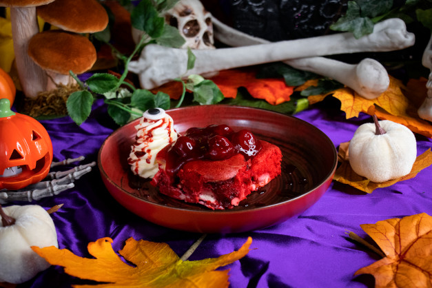 Στην κλασική ερώτηση φάρσα ή κέρασμα τα TGI Fridays™ απαντούν με limited edition γλυκά από την έμπειρη ομάδα του Cap Cap, όπως το Bloody Velvet, ένα red velvet με cream cheese και φράουλες ή το απολύτως φθινοπωρινό Wicked Pumpkin, ένα blondie λευκής σοκολάτας με κολοκύθα, cream cheese, γαρνιρισμένο με σως speculoos και marshmallow.