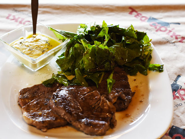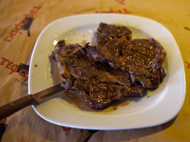 Στον κατάλογο δεν θα διαβάσεις πουθενά “rib eye”. Για την ακρίβεια, δεν θα το βρεις έτσι γραμμένο. “Μου το ζητούν πολλοί, γιατί δεν ξέρουν πως το τρώνε όποτε έρχονται εδώ ως σπαλομπριζόλα. Όπως δεν ξέρουν ότι η picanha, την οποία επίσης ζητούν, είναι καπάκι κιλότου και επίσης το έχουμε”.