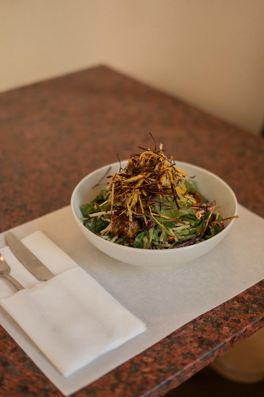Στους χώρους αυτούς όπου όλα έχουν μια ροή και εναλλάσσονται, η κουζίνα ακολουθεί το ίδιο μοτίβο ακολουθώντας την εποχικότητα, ενώ τα πιάτα ημέρας προσδίδουν ένα στοιχείο έκπληξης κάθε φορά, όποτε κάθε επίσκεψη είναι και διαφορετική. Το μενού αλλάζει σύμφωνα με την εποχή σε μεγαλύτερη βάση μα και καθημερινά με προσθήκες πιάτων ημέρας. Η εποχικότητα παίζει ρόλο στην ποιοτική διαθεσιμότητα πχ των λαχανικών και των φρούτων. Ταυτόχρονα τα πιάτα ημέρας δίνουν μια ευελιξία όχι μόνο όσον αφορά τη δημιουργικότητα της κουζίνας μα και στην έρευνα αγοράς σχετικά με διαθέσιμα προϊόντα που εμφανίζονται κατά καιρούς στους προμηθευτές. Όσον αφορά το μενού, οι επιλογές παραμένουν αρκετά comfort από το πρωινό μέχρι το bar food. Στη σύνθεση του πιάτου υπάρχει σχεδόν πάντα κάποιο ωμό λαχανικό και πιθανόν κάποιος ξηρός καρπός που πέρα από τη γεύση προσδίδει μια ακόμα υφή στο πιάτο.