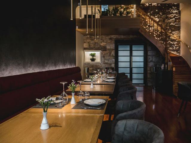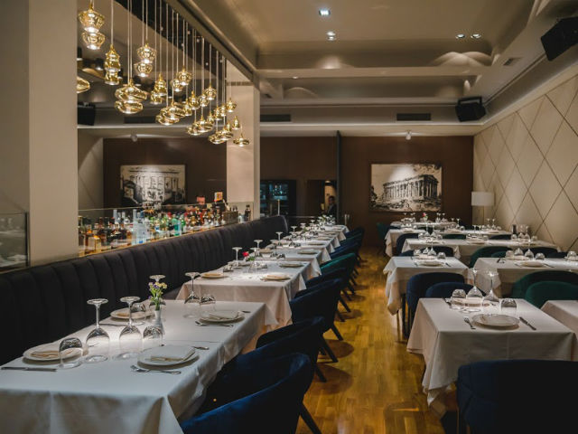 Η αρχιτεκτονική παρέμβαση αναδεικνύει τα αριστοκρατικά στοιχεία του παρελθόντος, συνδυάζοντάς τα με σύγχρονες πινελιές πολυτέλειας, οι οποίες ήταν απαραίτητες σ’ ένα all time classic εστιατόριο. Η φιλόξενη σάλα με τις βελούδινες μπλε και πράσινες καρέκλες της δένει υπέροχα με την προσθήκη ενός πανέμορφου και λειτουργικού bar από λευκό μάρμαρο Πεντέλης. Καλυμμένοι τοίχοι από καλαίσθητες ταπετσαρίες και πίνακες της παλιάς Αθήνας, δημιουργούν το απαραίτητο σκηνικό για να απολαύσετε τα υπέροχα πιάτα που υπογράφει ο Σεφ Άρης Τσανακλίδης.