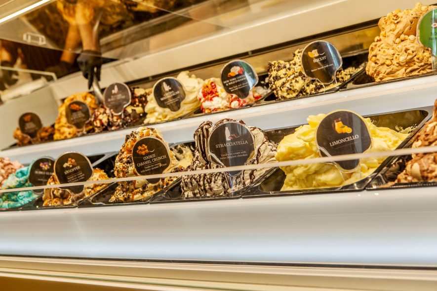 Στη συνέχεια, έρχεται η ώρα της επιλογής παγωτού. Αυτό φτιάχνεται καθημερινά από 100% φρέσκο βουβαλίσιο αλλά και αγελαδινό γάλα και θα το βρεις σε μια μεγάλη ποικιλία κλασικών αλλά και ιδιαίτερων γεύσεων. Εκτός από τη φημισμένη βάφλα σε κώνο, μπορείς να το συνοδεύσεις με pancakes, κλασική ανοιχτή βάφλα, κρέπα και φυσικά το μοσχομυρωδάτο χειροποίητο χωνάκι με βούτυρο που το νιώθεις από την πρώτη μπουκιά.
