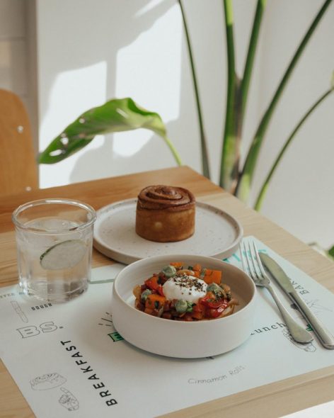 Χώρος minimal αισθητικής- που αυτό το διάστημα απλά τον χαζεύεις καθώς λειτουργεί μόνο το take away και το delivery – με κυρίαρχα στοιχεία τις λευκές επιφάνειες, το ανοιχτόχρωμο ξύλο και κάποιες διάχυτες vintage πινελιές, όπως η ογκώδης τηλεόραση που θυμίζει σαλόνι των παιδικών μας χρόνων ή το ψυγείο Izola.